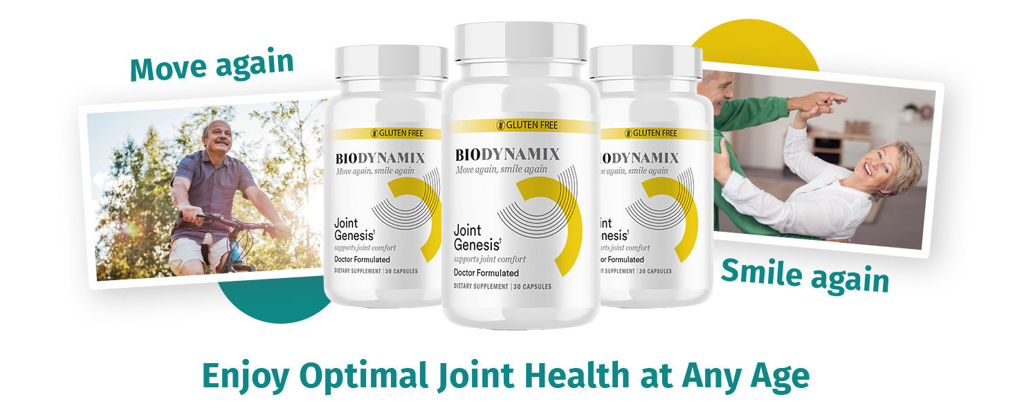 🌿 Reclaim Your Joint Freedom with Biodynamix Joint Genesis Rediscover the joy of movement with Biodynamix Joint Genesis, a supplement crafted by doctors to help keep your joints healthy and comfortable. Each capsule is designed to boost cartilage strength, lubricate your joints, and enhance flexibility, allowing you to move freely without any stiffness or pain. Whether you’re walking, dancing, or enjoying the great outdoors, Joint Genesis gives you the confidence to lead an active life. Plus, its gluten-free formula makes it a safe and effective choice for everyone, regardless of age or gender. Wave goodbye to discomfort and welcome back mobility and happiness. With Biodynamix Joint Genesis, it’s time to move, smile, and truly live again! What Is Biodynamix Joint Genesis? Biodynamix Joint Genesis is a top-notch joint support formula packed with powerful, clinically proven ingredients. It’s designed to nourish your joints from the inside out, help restore cartilage health, and provide lasting comfort. Unlike typical supplements that just mask pain for a little while, Joint Genesis tackles the real issue behind joint stiffness — the deterioration of joint cushioning and the loss of natural lubrication. Each capsule is gluten-free, safe, and effective for both men and women of all ages. Whether you want to stay active, ease stiffness, or simply enjoy a life free from pain, Joint Genesis is the ideal addition to your wellness routine. How Biodynamix Joint Genesis Works The Joint Genesis formula focuses on three key elements that play a crucial role in maintaining joint health: lubrication, flexibility, and cartilage support. Restores Synovial Fluid: It helps to replenish your joints’ natural lubrication, ensuring smooth and frictionless movement. Rebuilds Cartilage Strength: This formula supports cartilage tissue, minimizing wear and tear that comes with aging or stress. Fights Inflammation Naturally: Packed with powerful antioxidants and plant-based compounds, it helps alleviate discomfort and promotes overall joint comfort. Enhances Mobility and Flexibility: It encourages smooth, effortless movement in your everyday activities. Promotes Long-Term Joint Wellness: This product works from the inside out, providing lasting relief rather than just a temporary solution. Key Benefits of Biodynamix Joint Genesis ✅ Supports healthy cartilage and keeps your joints cushioned ✅ Enhances your mobility and flexibility ✅ Alleviates stiffness and discomfort ✅ Encourages long-term comfort and strength in your joints ✅ Gluten-free and perfect for everyone, no matter the age ✅ Formulated by doctors to ensure safety and effectiveness